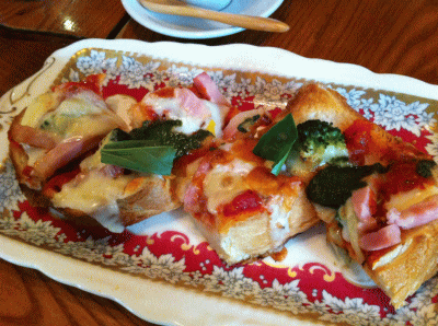 かなり高級感のあるお店で、ピザトーストを頼むとこんな感じででてきます。